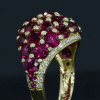 Celebrate love with this 14.5 ctw Round-Cut Ruby & Diamond Pavé Engagement Ring. A bold ruby center surrounded by sparkling white sapphire pavé shimmers atop a classic setting, all crafted in gold-plated, 925 sterling silver. This vintage-inspired statement ring pairs dramatic color and refined shine—ideal for an eye-catching proposal or milestone gifting.