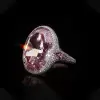 Crafted in sterling silver. Oval cut pink sapphire center stone combined with paved round cut white gems together to create elegant and charm pink diamond ring. And the harmonious color matching creates the elegance of jewelry.