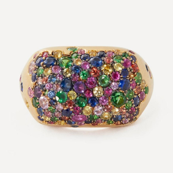 Experience a burst of color with the 2.5 ctw Multicolor Sapphire Paved Cocktail Ring. This vibrant ring features a pavé-set array of multicolored sapphires, crafted in glittering 925 sterling silver. Perfect for making a bold statement at any occasion.