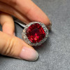 Make a dramatic statement with SayaBling's 16ct Cushion‑Cut Ruby Cocktail Ring. Set in nickel-free 925 sterling silver with premium platinum plating, this ring features a bold cushion-cut ruby centerpiece weighing approximately 16 carats, offering luxe elegance at an accessible price.