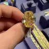I love this ring. It's very comfortable.The center stone is large and looks like a real yellow diamond. I will buy from this store again!!