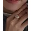 This ring's vintage design and cushion-cut stone make it a timeless choice for engagements. The two-tone finish adds a unique touch, blending classic and contemporary styles.