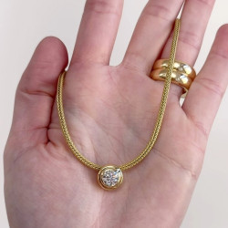 I love the omega chain with a solitair pendant. Simple and elegant… and I love, love, love the way it sparkles as it swivels on the charm. I bought this so I could take on vacations. I do not like to take my expensive jewelry on vacations. This is the perfect NECKLACE for all my upcoming trips!!!