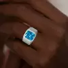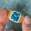 Stand out with SayaBling's 6.8ct Emerald‑Cut Blue Zircon Men’s Ring. Crafted from gold-plated 925 sterling silver, it showcases a striking blue zircon cut in an emerald shape, offering deep blue brilliance with elegant, masculine style suitable for both formal and everyday wear.