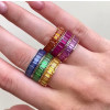 The 7ctw Emerald-Cut Multicolor Sapphire Channel-Set Eternity Ring from Sayabling is a vibrant and sophisticated piece that embodies timeless elegance. This exquisite ring features a continuous row of emerald-cut multicolor sapphires, meticulously channel-set to create a seamless band of color encircling the finger. The array of sapphires showcases a spectrum of captivating hues, offering a versatile accessory that complements various styles and occasions. Crafted with precision, the channel setting not only enhances the brilliance of each gemstone but also ensures a smooth and comfortable fit. This eternity ring is perfect for those seeking a unique and colorful addition to their jewelry collection, symbolizing endless beauty and grace.