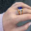 SayaBling's 8.4ct Emerald Cut Tanzanite Blue Sapphire Engagement Ring is a striking piece that combines bold design with elegant craftsmanship. Crafted from 925 sterling silver, this ring features a captivating emerald-cut tanzanite blue sapphire, totaling 8.4 carats, making it a standout choice for those seeking a unique engagement ring.