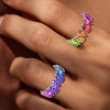 Sayabling's 12CTW Pear-Cut Rainbow Sapphire Eternity Ring is a vibrant celebration of color and elegance. Featuring a stunning array of pear-cut sapphires in a mesmerizing rainbow gradient, this eternity band is a bold and unique statement piece, perfect for any occasion.