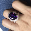 Bold and luxurious, this 9.3 ct Oval-Cut Amethyst Bold Paved Cocktail Ring showcases a striking oval-cut amethyst, fully pavé-set for maximum sparkle. Crafted from 925 sterling silver, this dramatically wide ring (21 mm width) makes a striking statement—perfect for cocktail events, evening wear, or whenever you want your jewelry to make waves.