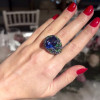 SayaBling's 9.3ct Oval Cut Tanzanite Blue Sapphire Bold Cocktail Ring is a striking piece that combines bold design with timeless elegance. Crafted from 925 sterling silver with a platinum finish, this ring features a 9.3-carat tanzanite blue sapphire in an oval cut, measuring 12x16mm. The ring's width is 23mm, making it a substantial statement piece.