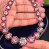SayaBling's 90ctw Halo Ruby White Sapphire Statement Necklace is an exquisite piece that combines vibrant rubies with sparkling white sapphires in a timeless halo design. Crafted from 925 sterling silver with rose gold plating, this necklace offers both elegance and durability.