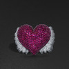 SayaBling's Angel Wing Ruby Paved Heart Cocktail Ring is a striking piece that combines romantic symbolism with bold design. Crafted from 925 sterling silver, this ring features a heart-shaped centerpiece adorned with approximately 5.8 carats total weight of rubies and white stones. The heart is flanked by angel wing motifs, adding an ethereal touch to the design. The ring's width measures 17.8mm, making it a substantial statement piece.