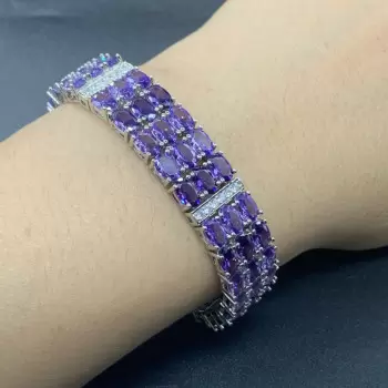 $104.95 $159.6534% OFF42ctw Oval Cut Amethyst Three Row Statement Bracelet