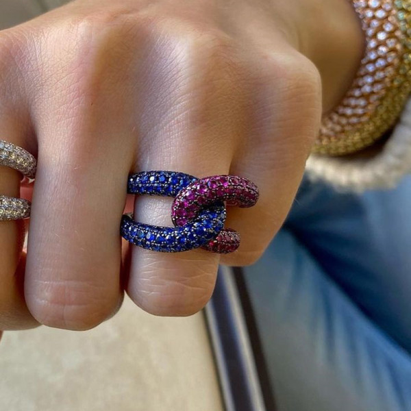 The Paved Multicolor Sapphire Bold Knot Unisex Ring from Sayabling is a striking piece that seamlessly combines contemporary design with vibrant gemstones. Crafted from high-quality 925 sterling silver, this unisex ring features an intricate knot design, symbolizing unity and strength. The knot is adorned with meticulously paved multicolor sapphires, offering a dazzling array of hues that catch the light beautifully. Available in various stone color combinations, including Ruby+Blue and Green+Blue, this ring allows for personalization to suit individual styles. Its bold and elegant design makes it a versatile accessory, suitable for both casual and formal occasions.
