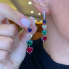 Heart cut stones made these drop earrings.A line of emerald, ruby, white and blue sapphires made the earrings look so romantic and charming. Crafted of sterling silver, the earrings have a total stone weight of 11.53 carat.