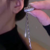 These stylish white sapphire hoop earrings feature a row of round stones. Fashioned in sterling silver, the earrings have a total stone weight of 1.95 carat