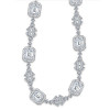 Halo emerald cut white sapphire necklace has a total stone weight of 15.5 carat. Crafted in sterling silver with stunning flower design.