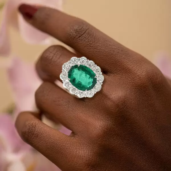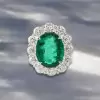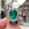 This glamorous halo ring features an oval-shaped emerald green center stone, encircled by a sparkling halo of white gems for a captivating, nature-inspired look. Perfectly serve as your wedding ring, engagement ring, promise ring, and cocktail ring. A must for fashion girls and women.