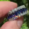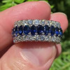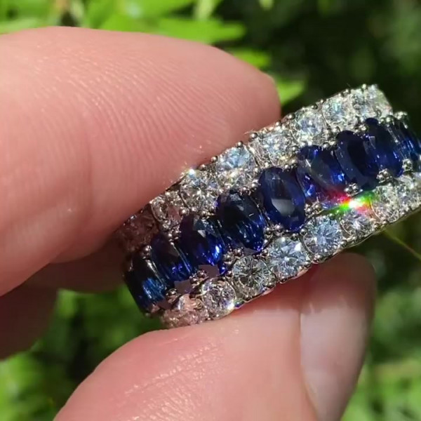 Double-row Round-cut white gems combined with one-row oval cut sapphire together to create the spectacular look of the sapphire eternity ring. Ideal for gift, wedding,engagement and daily wearing.