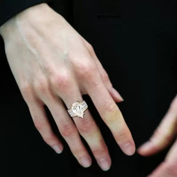 Sayabling's 10ct Wide Shank Pear Cut Engagement Ring features a pear cut gemstone and a timeless design for all generations. Our silver pear shaped engagement ring is suitable for women looking for elegance and romantic charm as well.