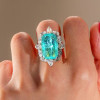 Unique Paraiba Topaz primary stone adds a touch of mystic,surrounded by multi-cut white gems,Wearing this cocktail ring to create a exaggerated luxury feel of your party.