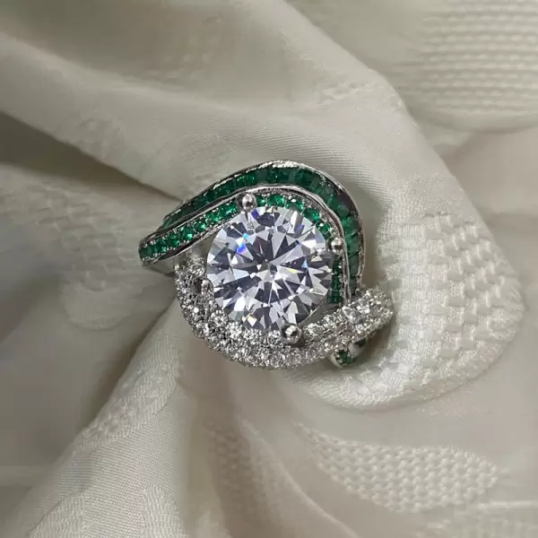SayaBling's Vintage 3.8ct Halo Round Cut White Sapphire Engagement Ring is a captivating piece that blends timeless elegance with modern brilliance. Crafted from 925 sterling silver, this ring features a 3.8-carat white sapphire, surrounded by a halo of smaller stones, enhancing its sparkle and presence.