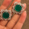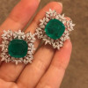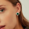 Crafted in sterling silver, each earring features a cushion cut emerald sapphire wrapped as the center stone, which glistens with pear stones around. These sparkling vintage stud earrings will make you eye-catching and become the center of attention.